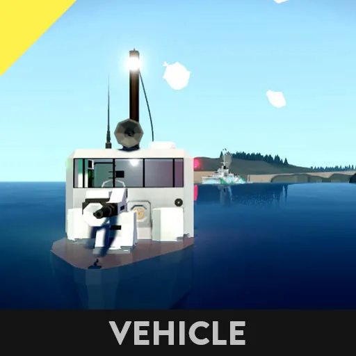 Pride and Joy of the JANk Navy. Little boat I made when I was bored. Has a heavy autocannon in front and a light autocannon on the right side. Nice radar and bilge pumps as well as easy access tools for repairing and putting out fires.