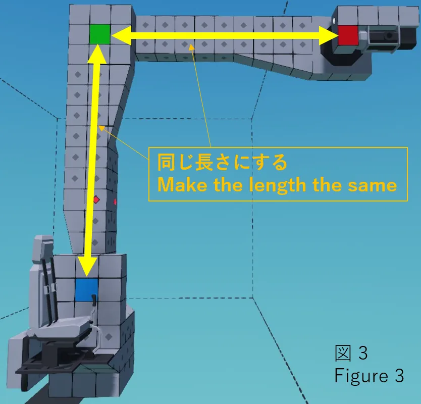 ・マイコンのプロパティ「Arm length」の値は、図3の黄色の矢印の長さ(正確には、関節回転軸の中心間の距離)を入力します。