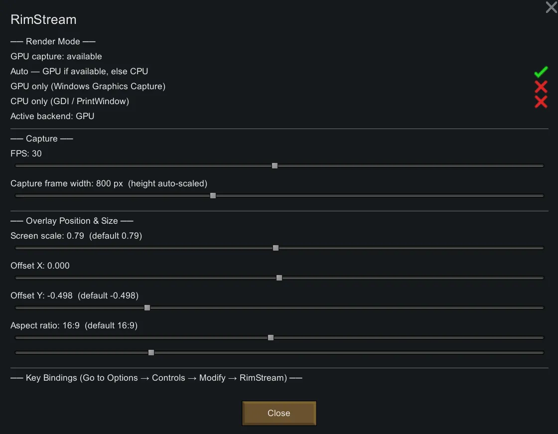 Supports two capture backends selectable in mod settings: