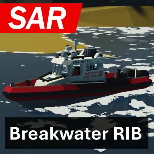 The SAR Breakwater RIB (Rigid Inflatable Boat) is a small, affordable Coast guard boat that is very capable for its size. It handles coastal waters well in all weather conditions, even in high winds.