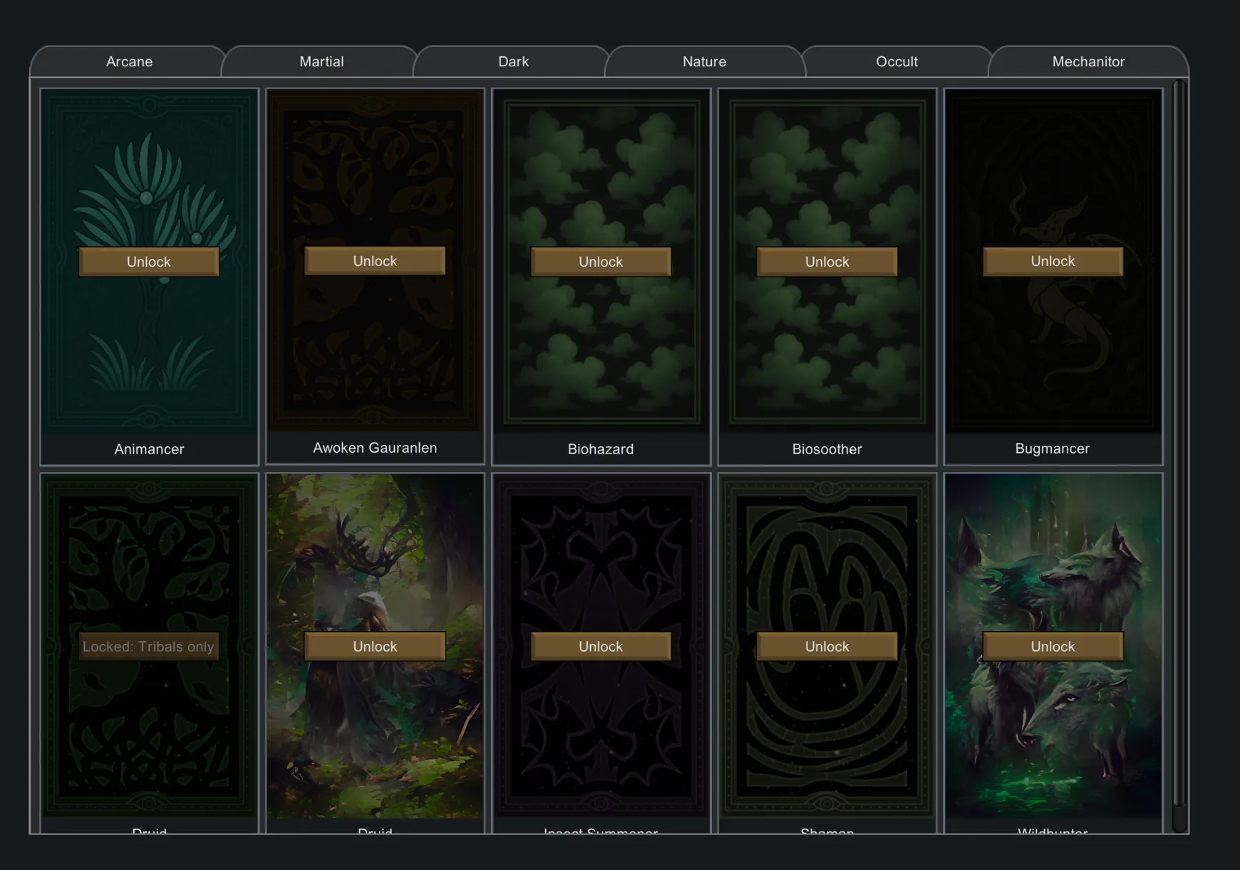 [b]Nature[/b] holds animal-related trees from Alpha Animals, Wildheart Psycasts and Sentinel.