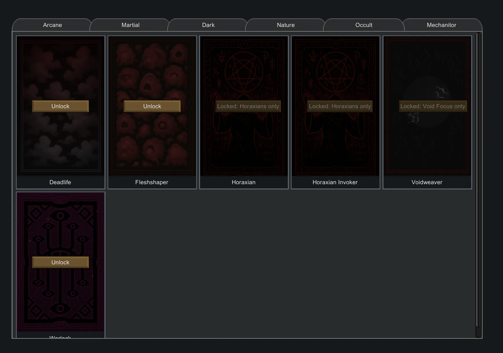 [b]RPG Adventure Flavour Pack[/b] separates psycast trees into two tabs: [b]Arcane[/b] and [b]Martial[/b]. This mod sorts other psycast mods into these tabs and adds additional tabs for other groups of psycast trees.