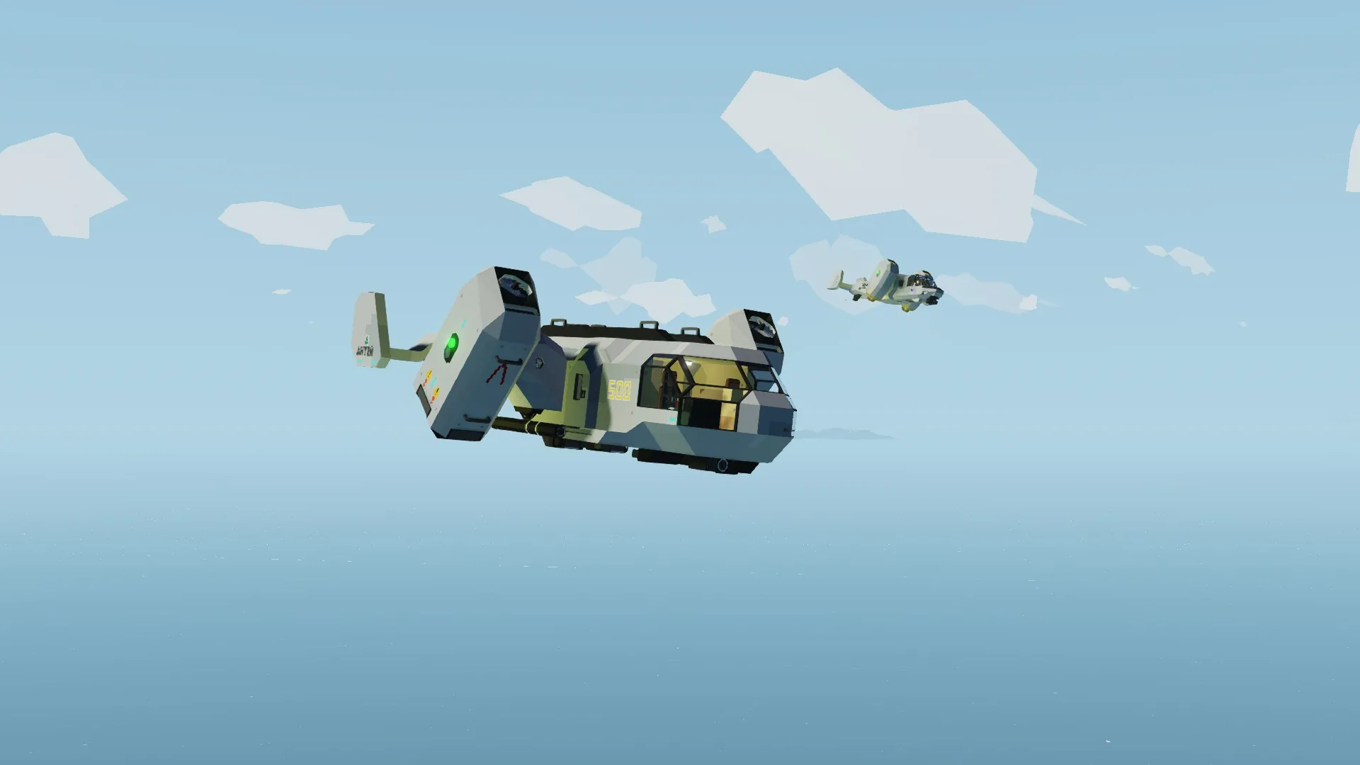 Keep in mind that the transport does not have a horizontal flight mode like the VTOL-12, so it is controlled only like a helicopter.