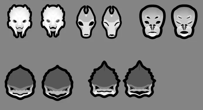 The original art was slightly altered for a better result, and I added custom animated eyelids and mouths. I also prevented them from spawning with eyebrows.