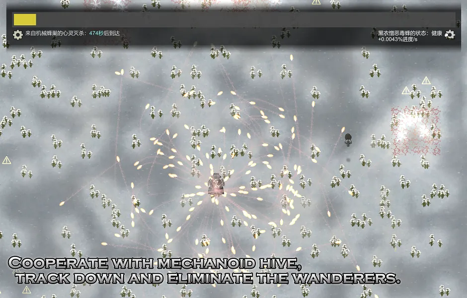 [b]Accept the cooperation invitation from Mechanoid Hive and work with mechanoids to track down the whereabouts of the Black-clad mechanoids together. Assist in building a mechanoid cluster, explore the abandoned bases of the black-clad mechanoids, and ultimately locate their lair, erasing them from history forever.[/b]