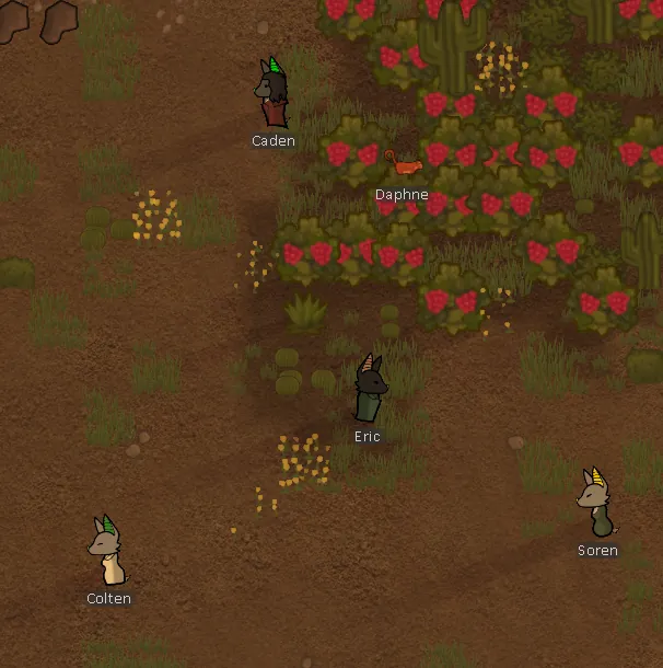 Having spread through shared space flight technologies, the Bats of Rimworld eventually managed to get their own ships and become an entity of their own making. They will show up from time to time in other factions, but also have groups of their own. Forged in dimly lit neon cities, these creatures are good at hunting, but don't take much damage. They are also, of course, nocturnal - don't let them exist during the day time!