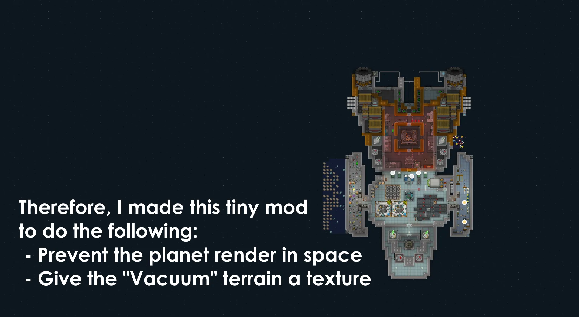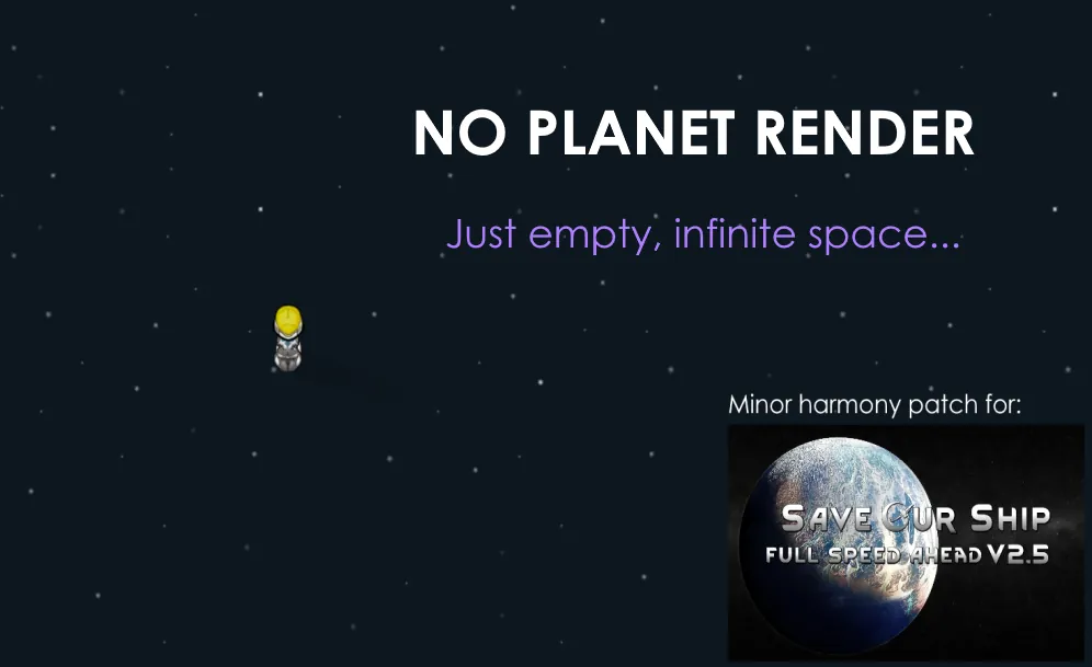Simple mod that removes the Save Our Ship 2 planet rendering overtop the vacuum tiles and instead replaces it with the vacuum tile's loaded terrain texture. This mod gives vacuum tiles the space texture that is relatively similar to what is shown on the world screen.