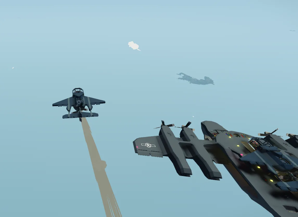 Also, make sure the red light in the small aircraft is off. If it is, you will not become magnetized with the aircraft carrier.