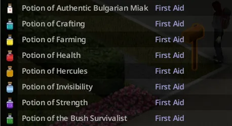 [*] Potion of Farming, Makes you skilled in farming for 1 in game hour