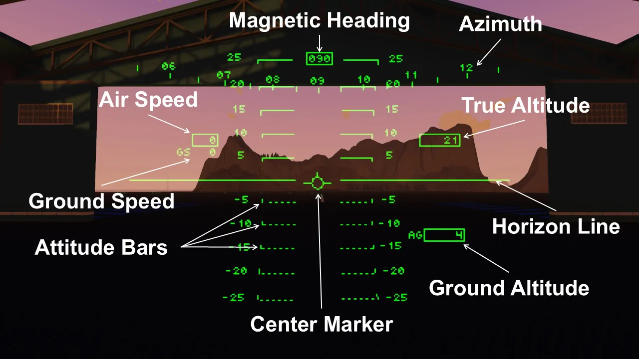 I made a basic HMD. It can display attitude, azimuth, speed, and altitude.