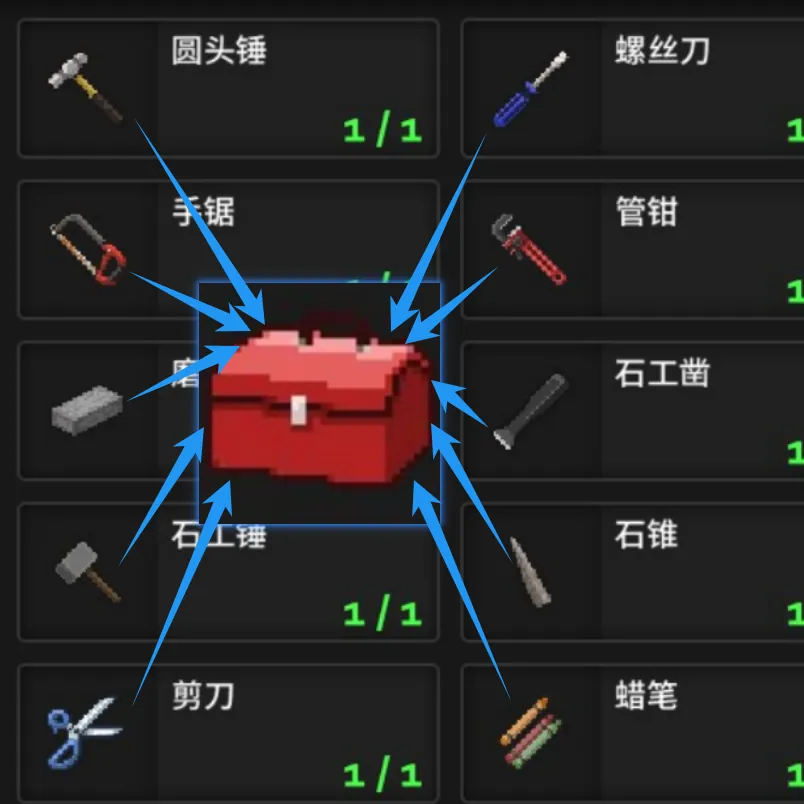 5. It is recommended to carry 2 toolboxes when going out, as some recipes require multiple tools to be used together to make them.