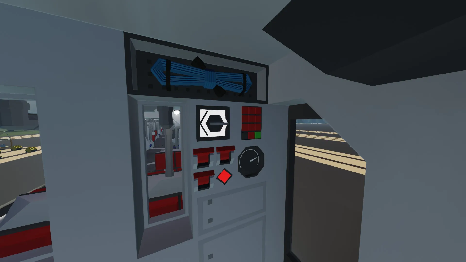 Start by entering the driver cab at the front of the vehicle.