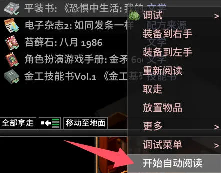 2.点击后就可以自动阅读容器中所有可阅读的书籍/杂志/技能书