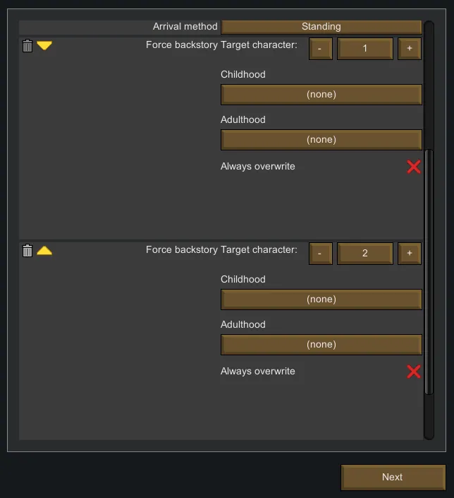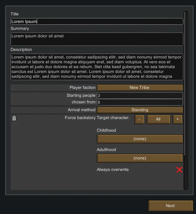 You can force child and/or adult backstories to your pawns for new scenarios. You can change all pawns at once or just specific ones and choose different backstories for each pawn.