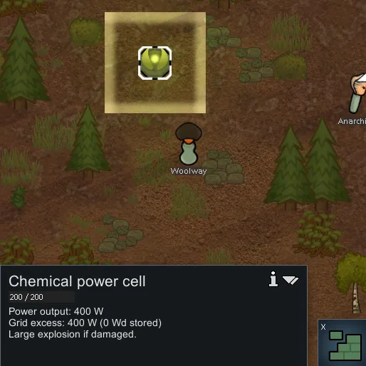 Much less unstable than the mech version, but will still have a small explosion if damaged enough (images feature Anarchist with the result of pawn vs power cell fistfight).