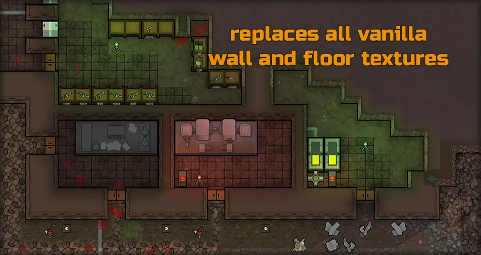 Re-textures the walls, mine-ables and floors in the game. For additional wall and floor textures please consider my 'Extra Walls and Floors' mod here: