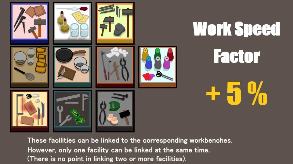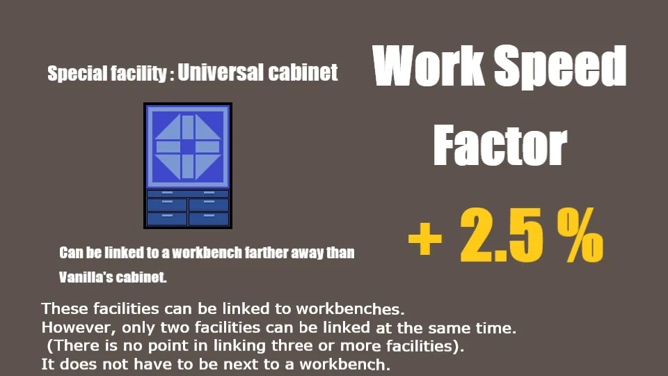 各作業台にリンクでき、作業台での作業速度や研究速度をアップする