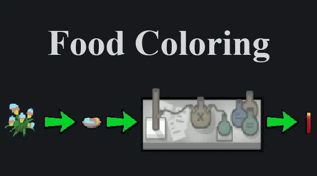 Allows you to turn that useless Dye into Food Coloring at a Drug Lab, Then you can sell it, or consume it. Let me know if this needs any balance changes, I was just tired of having excess dye with no use.