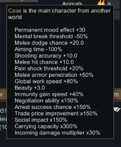 adds 2 traits to the game only gotten via debug or pawn edit mods e.g. edb prepare carefully or character editor.