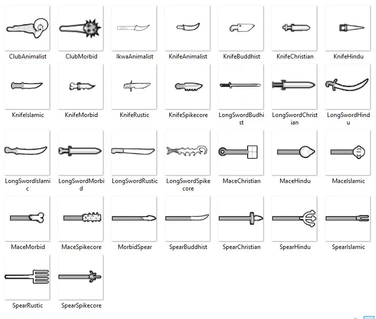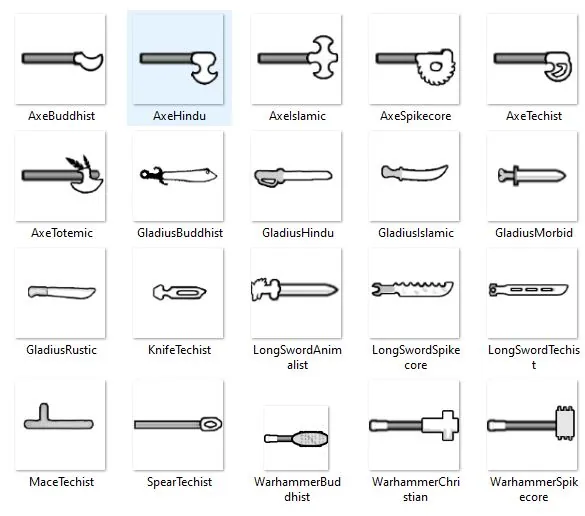 1.3 Axes and Warhammers. Also Techist melee weapons, some improvements and Tribalwear for Christian, Buddhist, Islamic and Hindu.