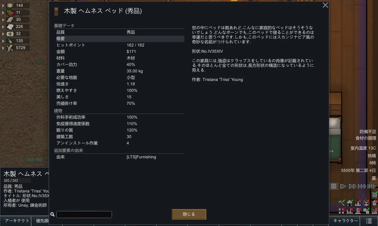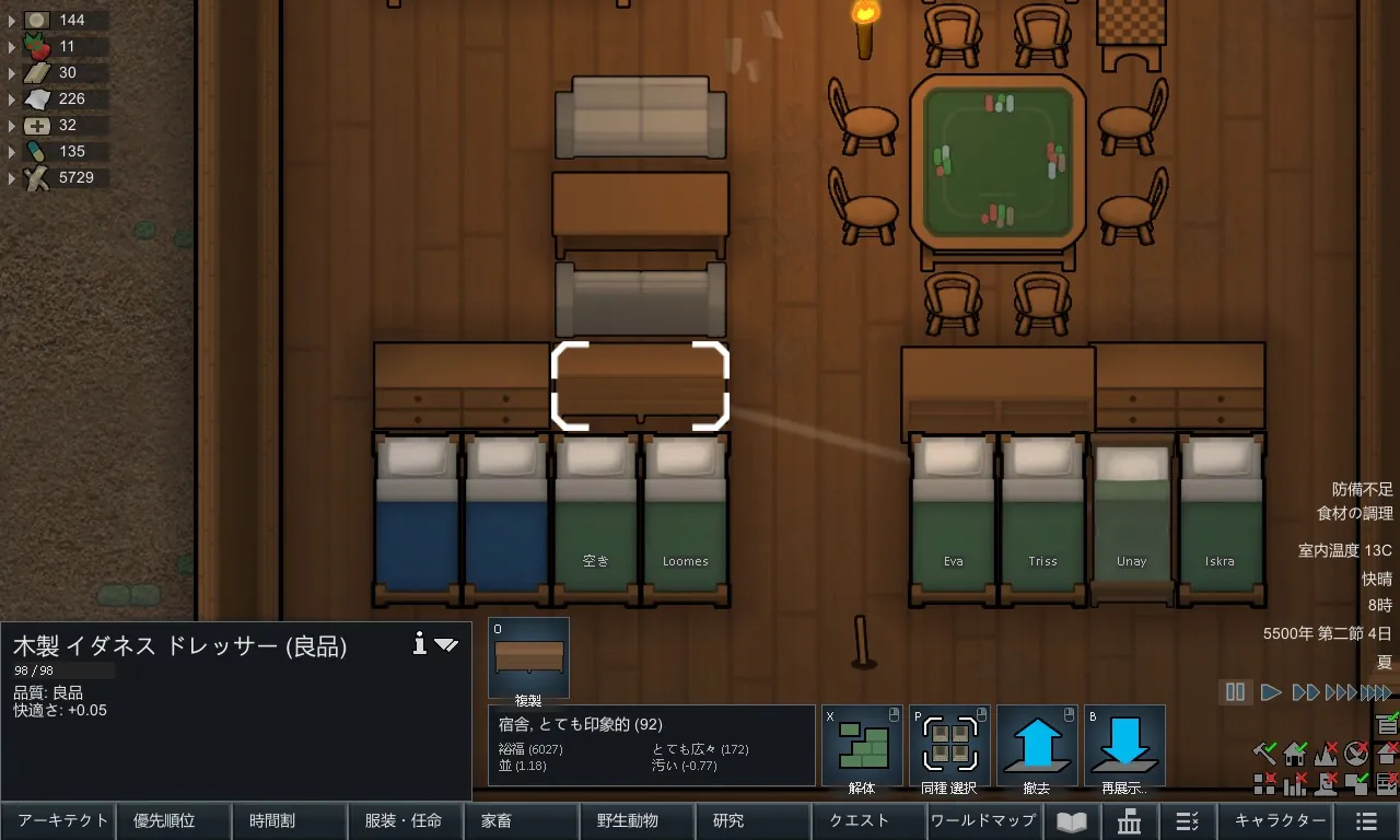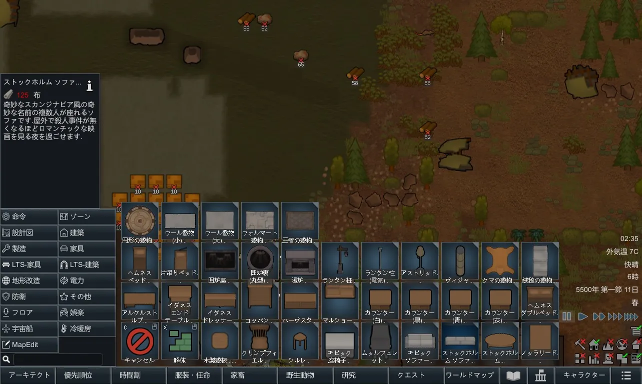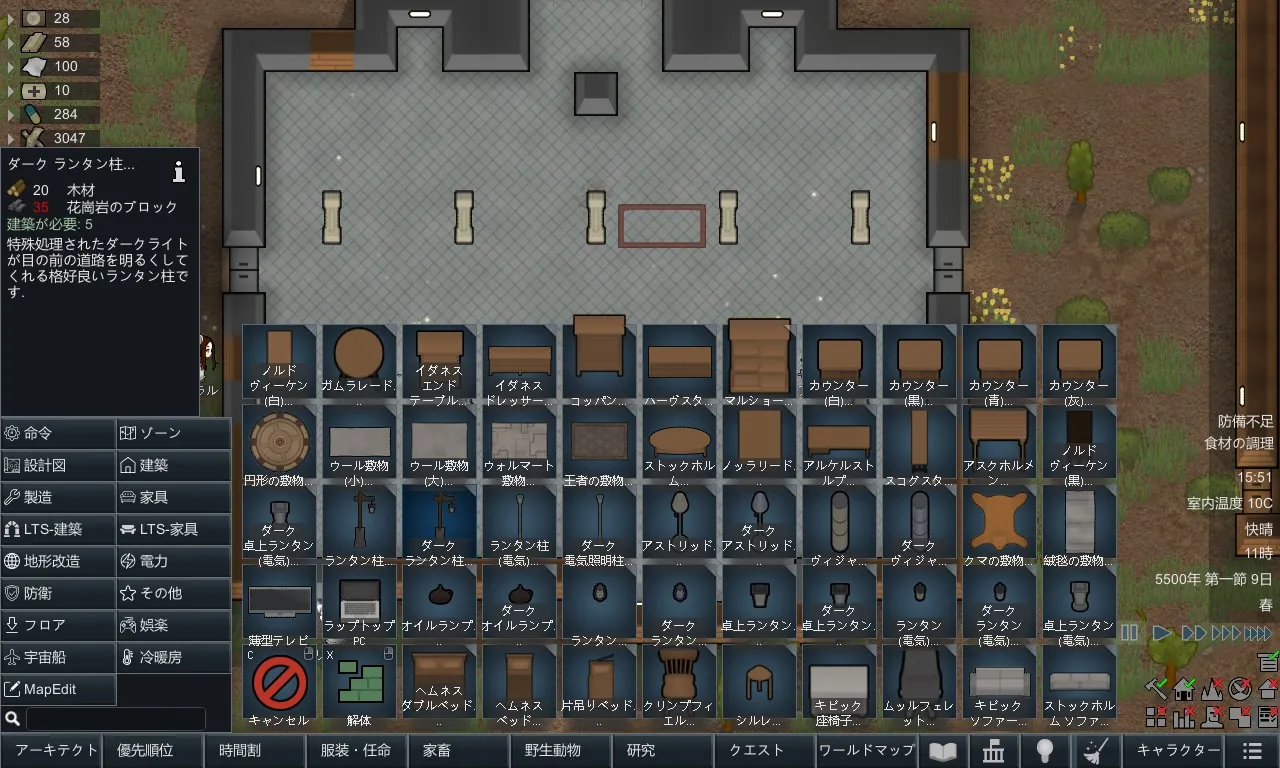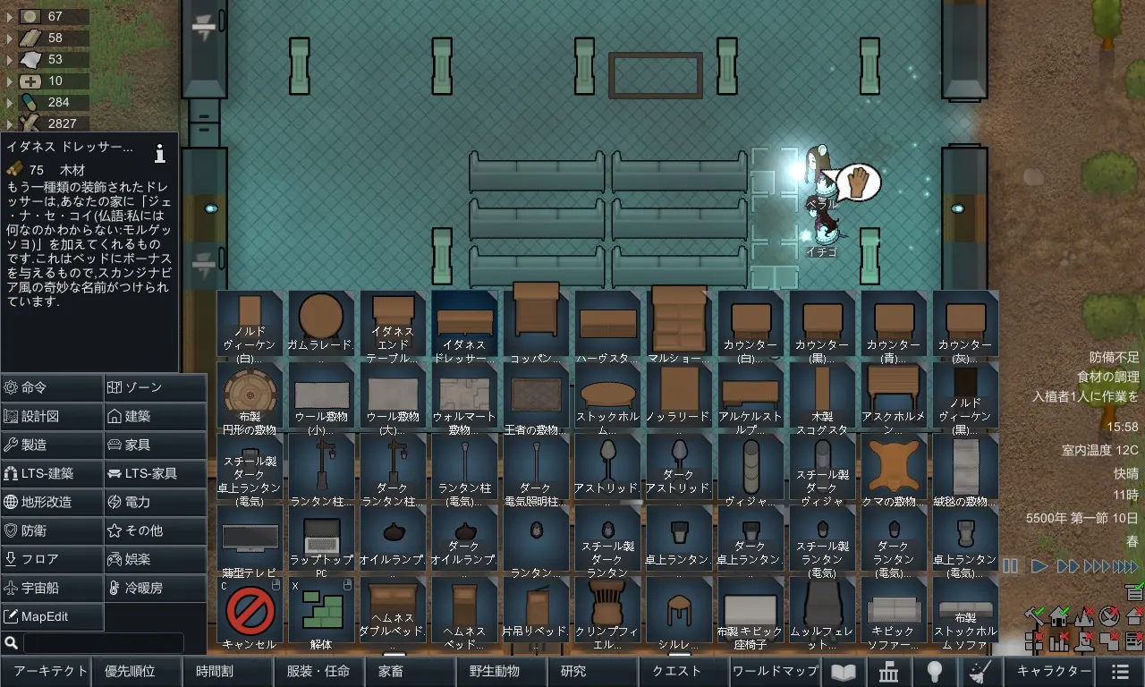 Rimworldの必要に応じて沢山のオプション家具を追加します。