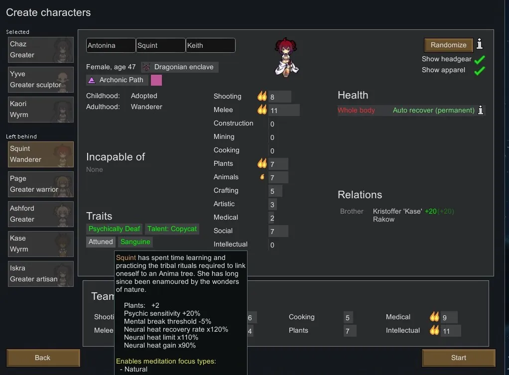 Standalone version of a trait I created for use with Dragonian Prime, the trait appears about as often as undergrounder, and it allows the owner of the trait to use natural focus meditation while providing a few bonuses to psycasters. It's not terribly useful for tribals, they'll just get the stat bonuses.