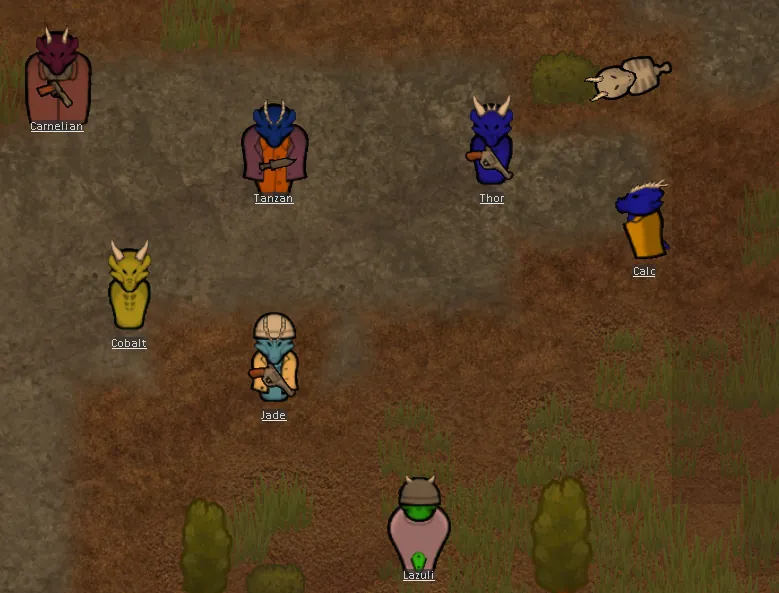 A combination of human and dinosaur DNA, they are larger and hardier than the average human, 10% larger and with more base hp than normal as well. They are also tolerant of high temperatures and resistant to high levels of toxic compounds. They can mine and construct 20% faster than normal, and have low flammability, making them good for firefighting combined with their high temperature tolerance. They quite enjoy the taste of raw meat, and gain small mood buffs from eating it, at the risk of food poisoning.