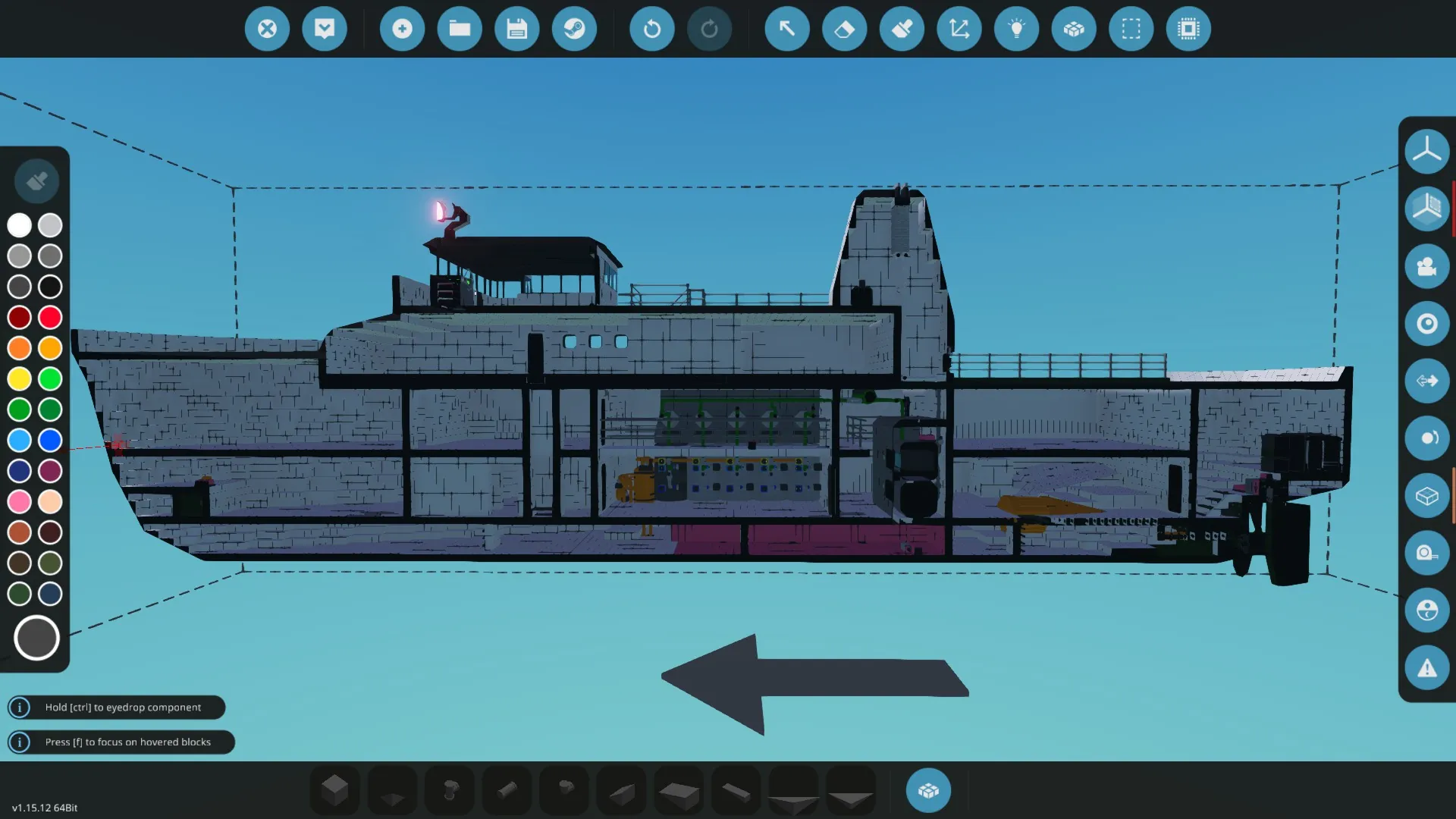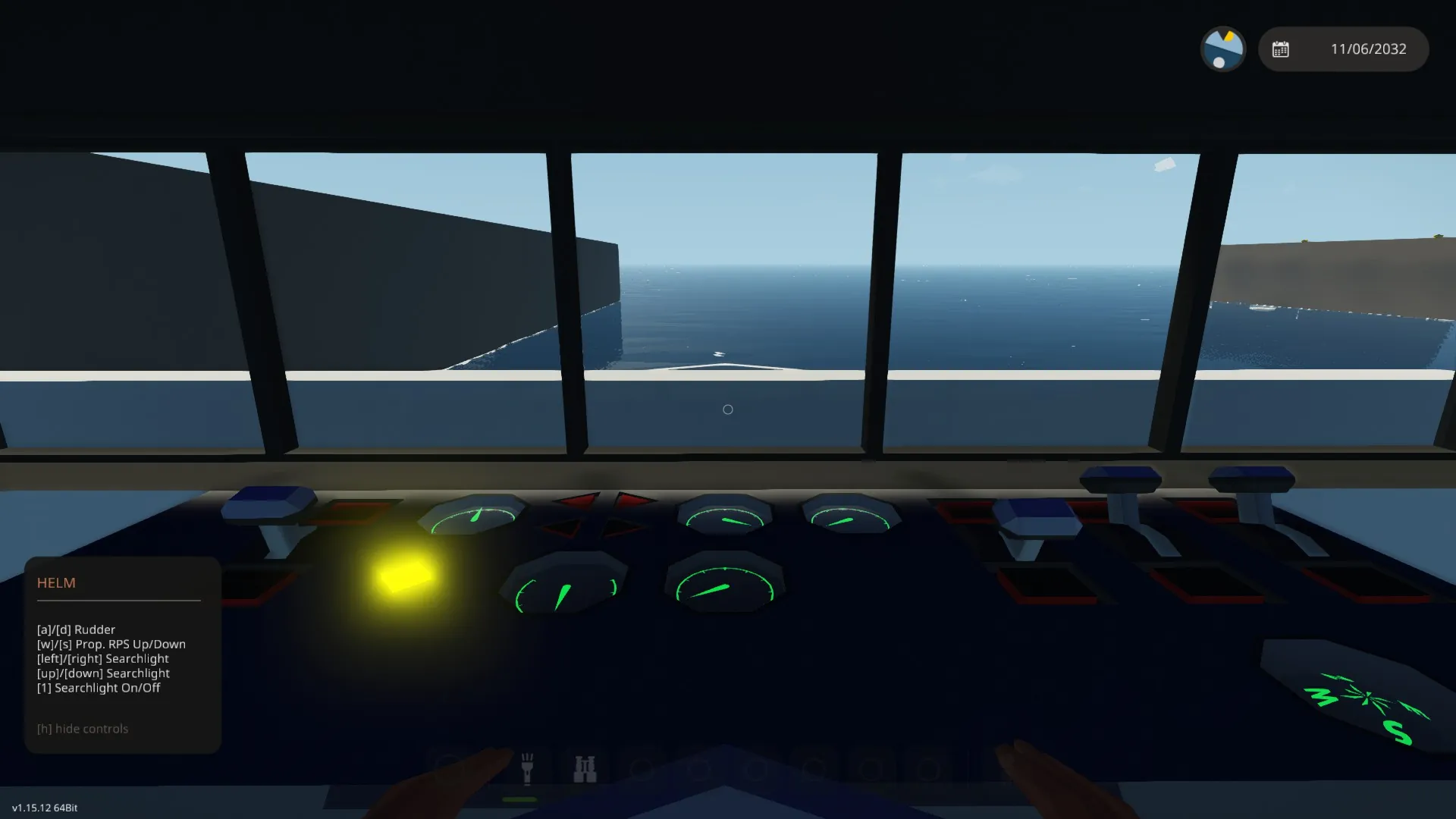 All controls are accessible from the wheelhouse. At the back of the wheelhouse is a dial showing the currently available propulsion power, if below 1, increase temp or steam supply undless you chose to run with a lower setting to reduce max. speed.