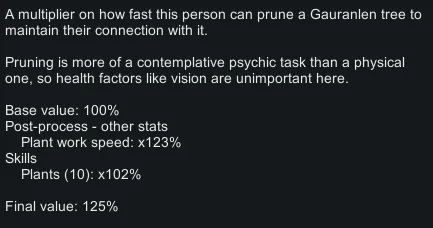 This mod makes Pruning Speed use Plant Work speed, so that your master planters are appropriately faster than other Pawns