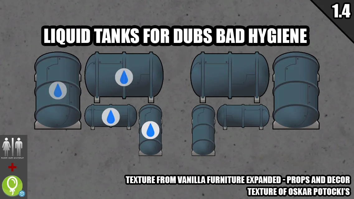 Add liquid tanks for Dubs Bad Hydiene. The tanks will be in a group and require separate research.