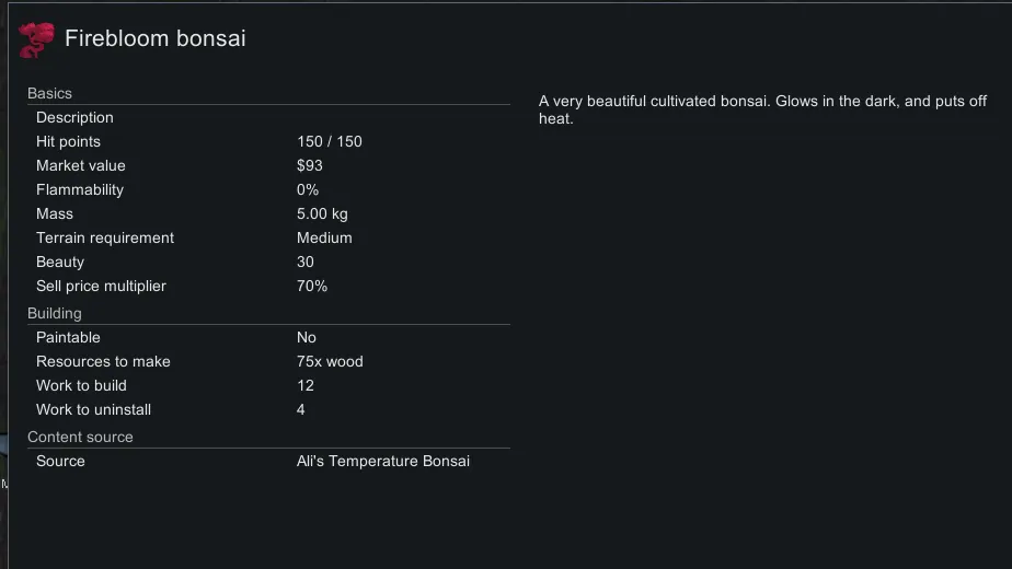 Adds in Bonsai furniture which change the temperature of the room, and even glow to provide light.