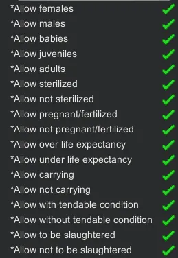 [*] v1.4 - added filter for animal designated to be slaughtered and filter for animal with an immediate or periodic need for tending