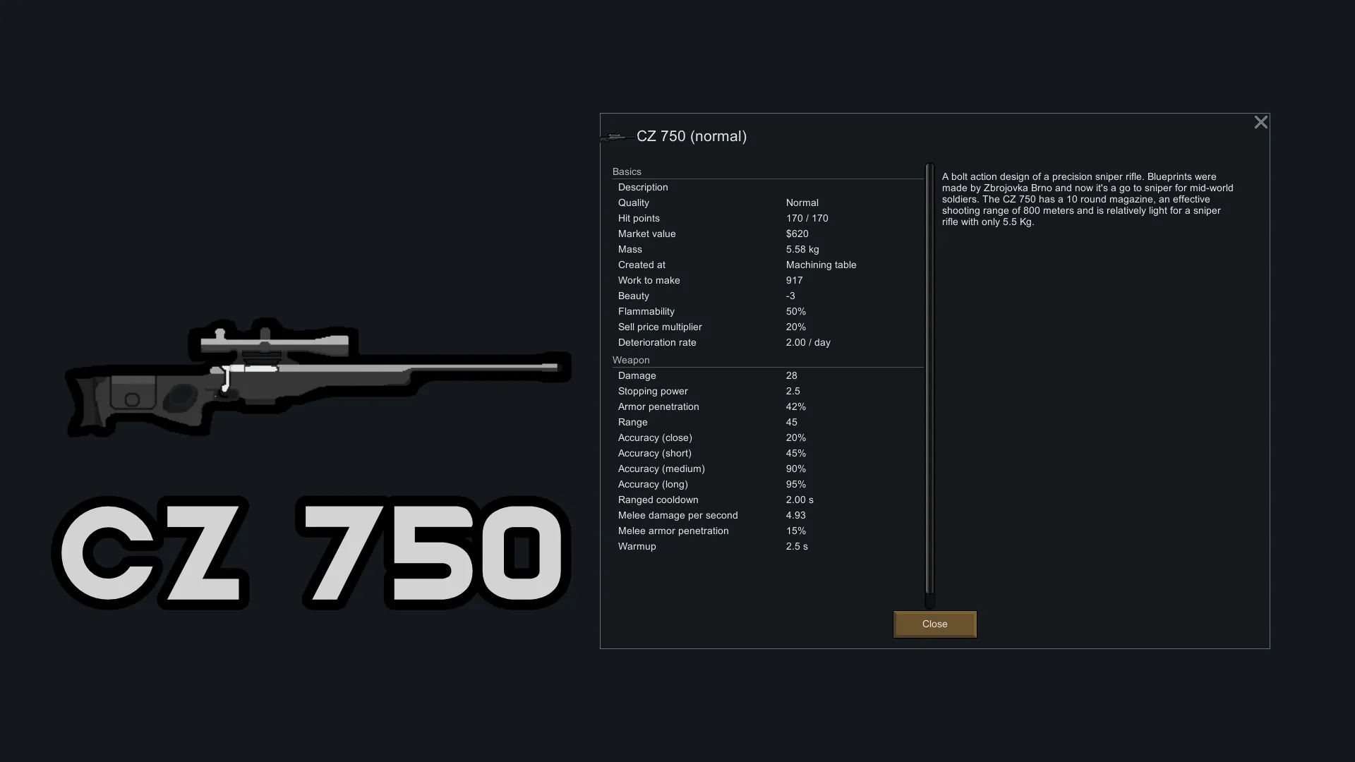 [b] CZ 750 [/b] - Another not so known sniper, this one is more of a sniper and less a bfg then the Falcon. Direct upgrade to the vanilla sniper rifle in trade for warmup and crafting requirements. (picture 4)