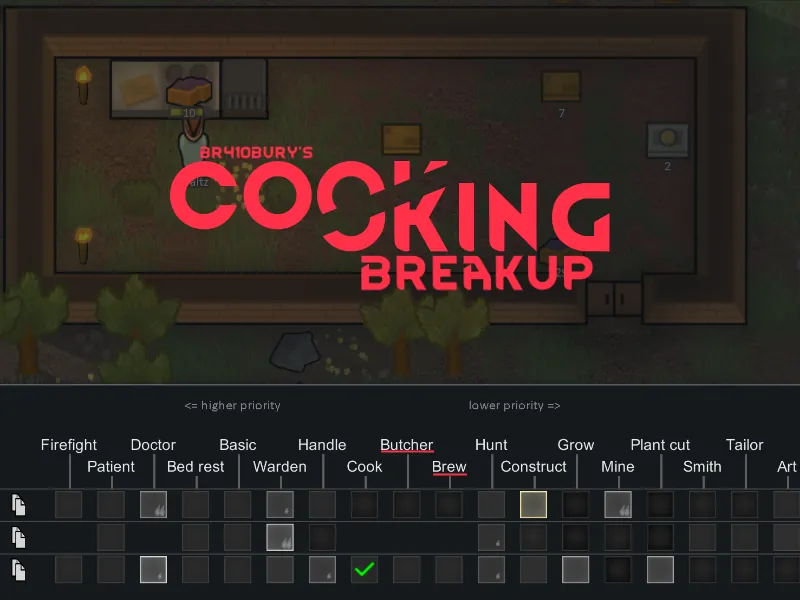 2: These are not moved out of the Cooking work type so a pawn set to Cooking will also butcher meat as needed as well.