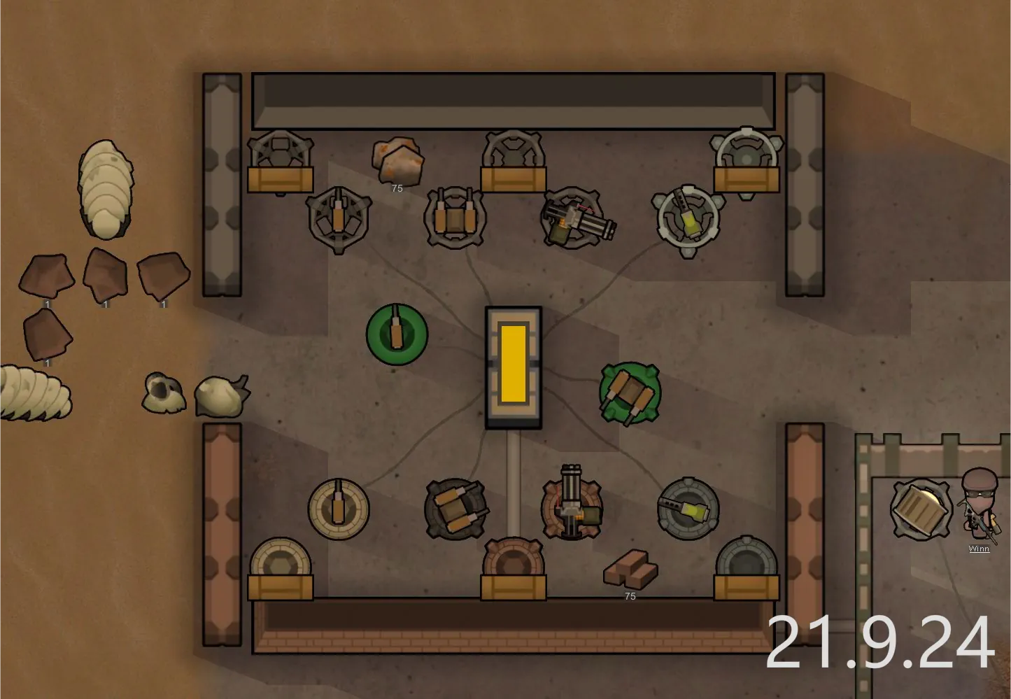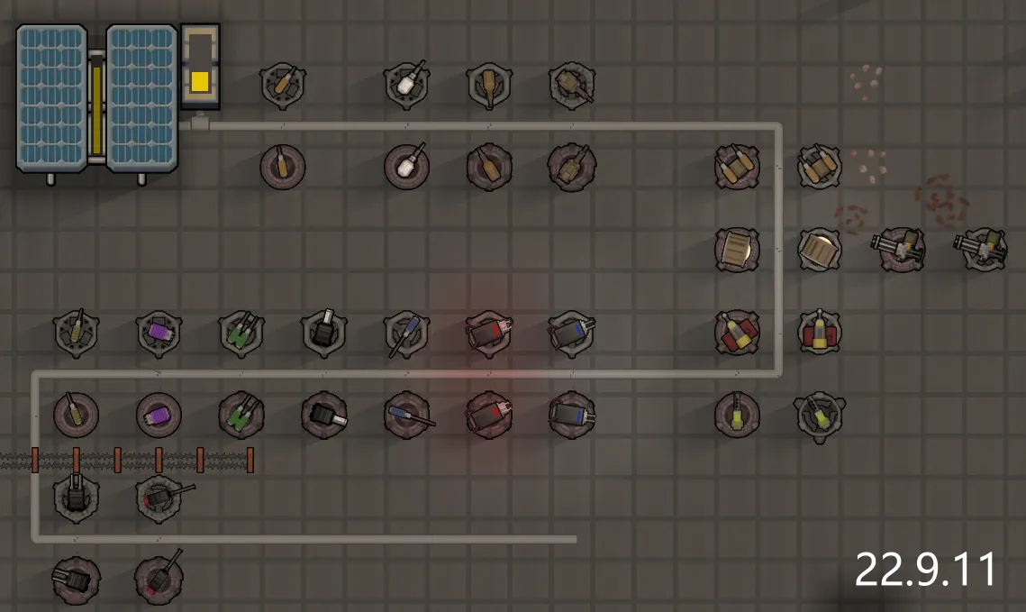 As we all know, the only function of the vanilla mini-turret is to prevent enemy from digging the wall of your base. However, in RW1.3, the breach raid forced players to leave the killbox and start to establish the outer defense line, so it's time to let the mini-turret play its due role.