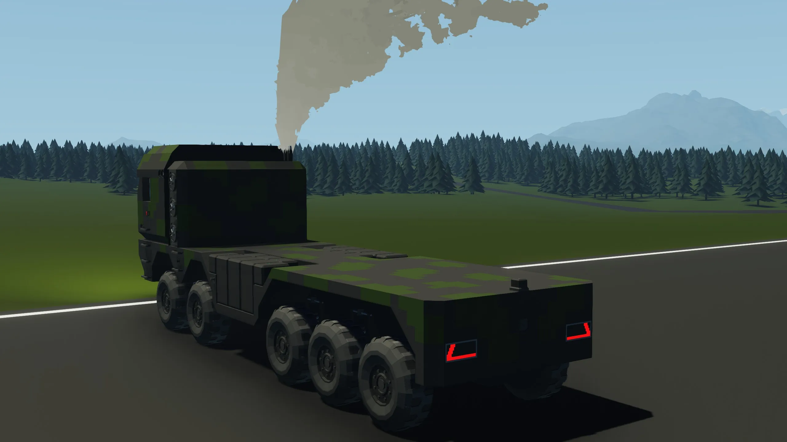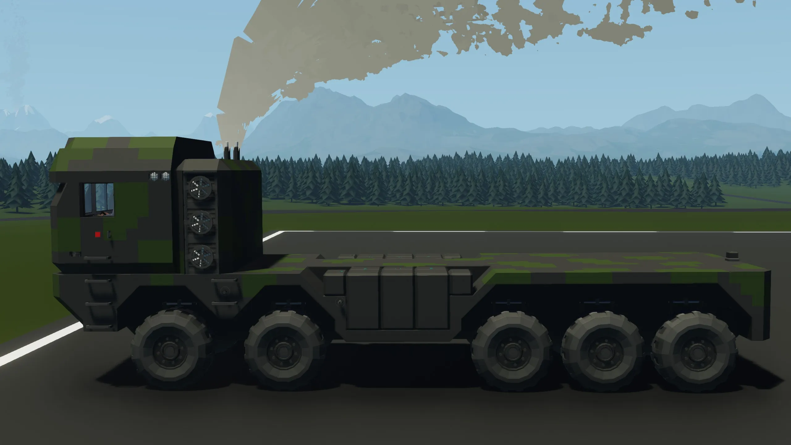 This rugged military-grade truck features a fully electric 10x10 drivetrain powered by a high-performance diesel generator. The generator engages automatically when power is needed, but can be manually disabled for stealth operations. The drivetrain includes advanced systems like traction control, ABS, and dynamic all-wheel steering, which adjusts both the turning radius and axis based on speed and direction.
