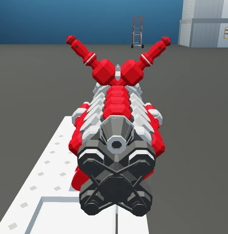 When you spawn it in, the engine will tilt to one side, creating the "V" layout, that is why it is only for display purposes.
