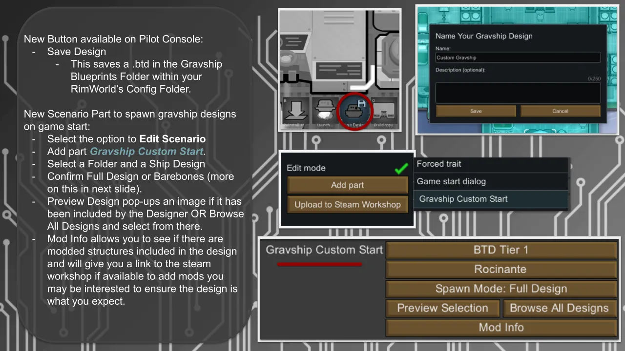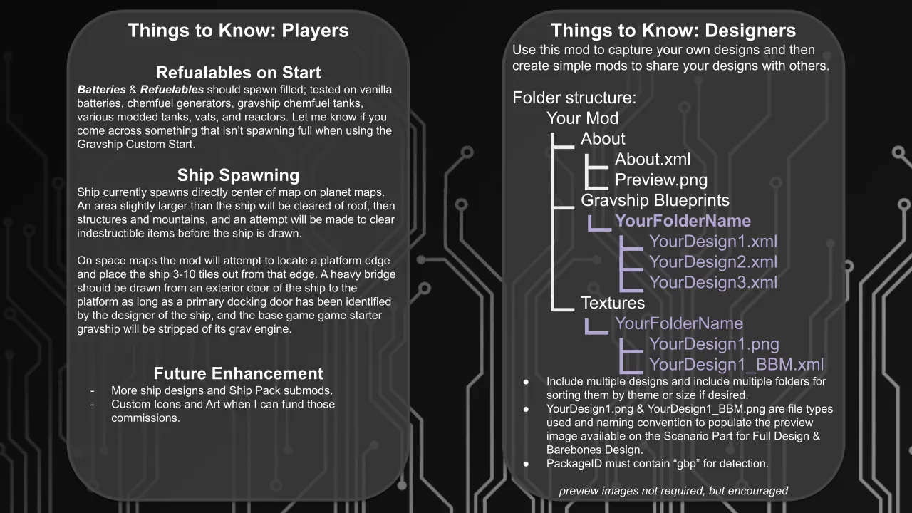 [*] [b]Saved designs:[/b] .../RimWorld by Ludeon Studios/Config/Gravship Blueprints/ [your designs here]
