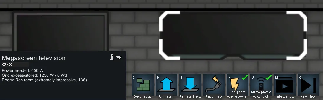 [b]Power consumption when playing[/b]: Set the power consumption for TVs when a show is playing. 100% is the same as vanilla.