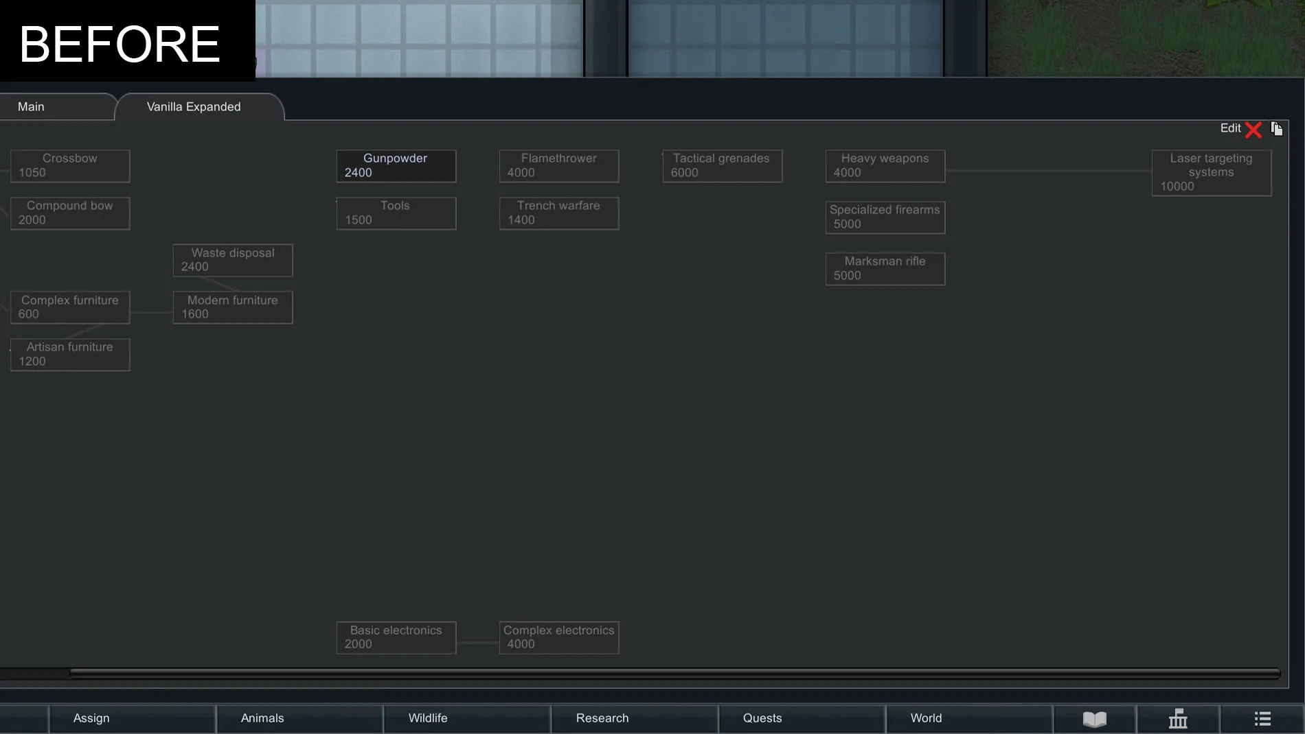 - Recommended to use a visual research tree mod to amend the confusing connections between modded research nodes. Eg [url=https://steamcommunity.com/sharedfiles/filedetails/?id=1266570759]https://steamcommunity.com/sharedfiles/filedetails/?id=1266570759[/url]