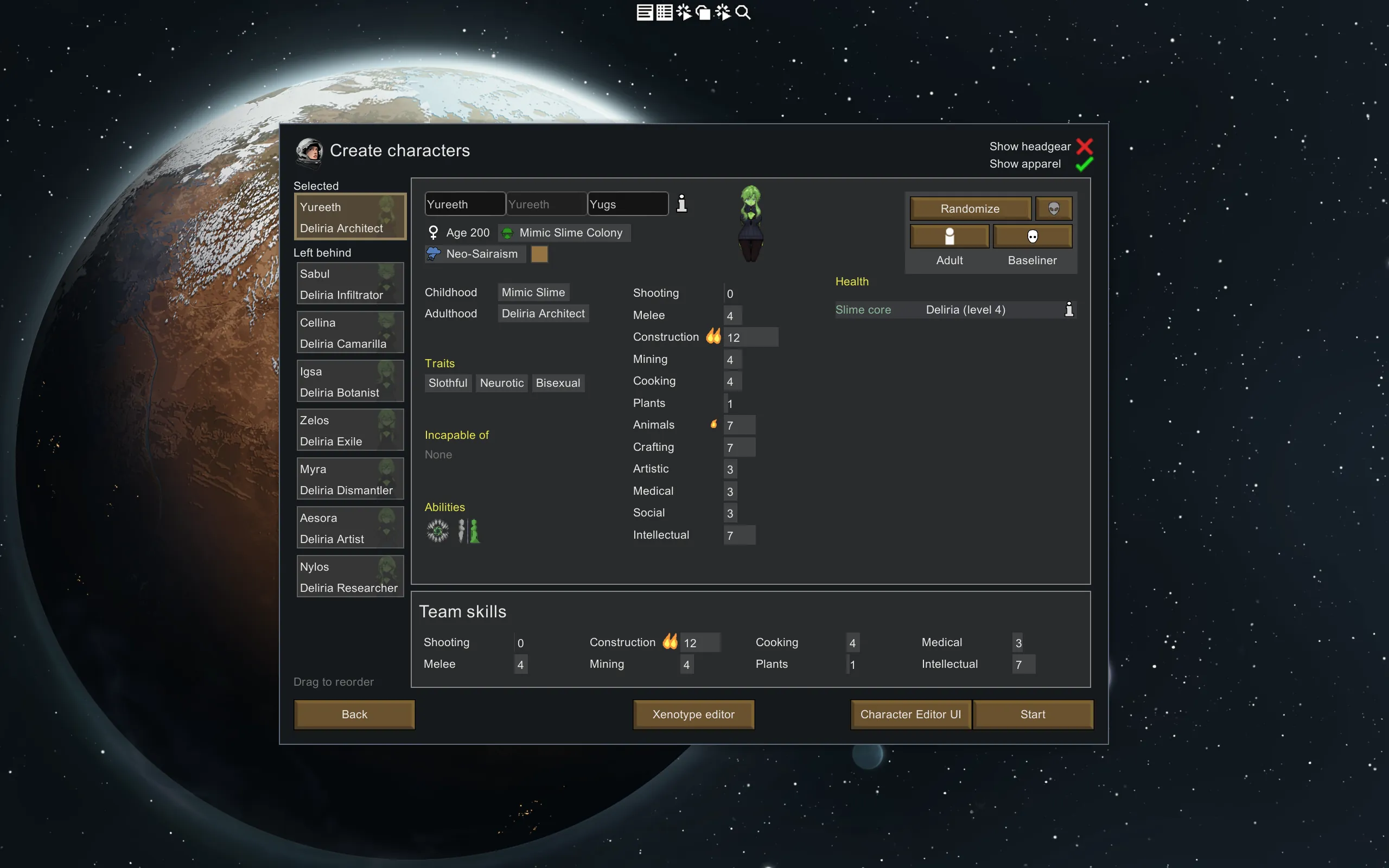 Deliria Levels: Deliria can gain Evolution Points by "forgetting"—that is, completely assimilating—an absorbed pawn, thereby leveling up. Before level 3, they cannot transform into slime-human form, and their work speed while not mimicking is reduced.