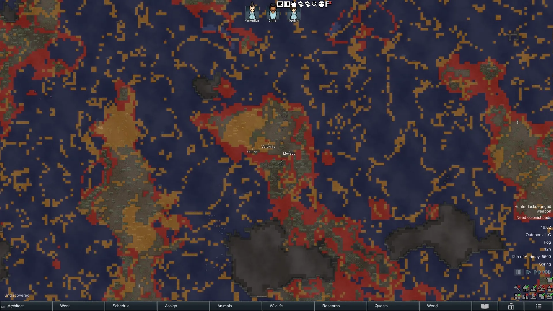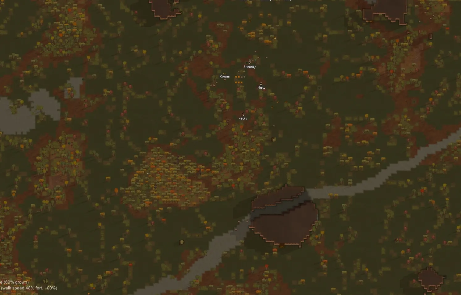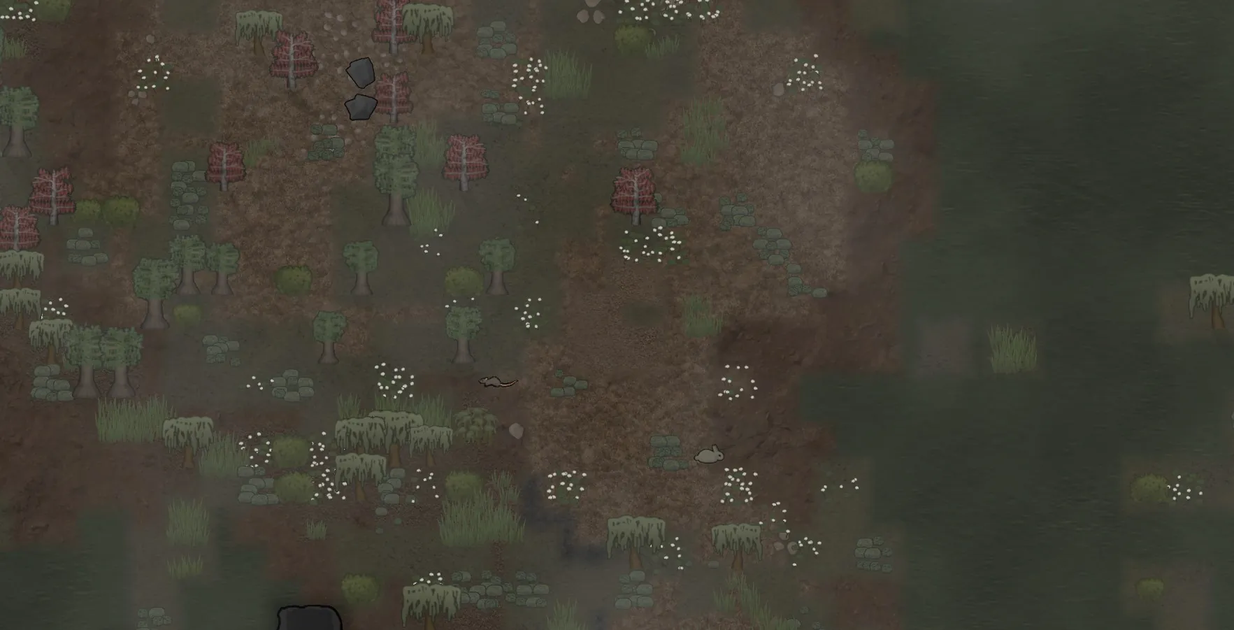 [*] No hills. There are little mineable resources; your only excess resource is wood.