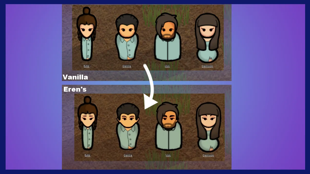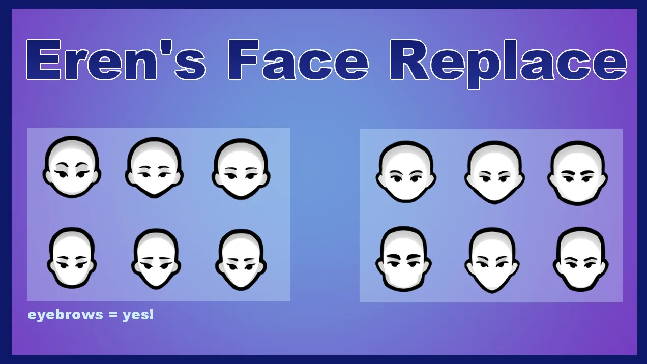 This is a simple texture mod that replaces the vanilla faces with higher resolution, restylized versions. They have subtle variation in eye and eyebrow shape.