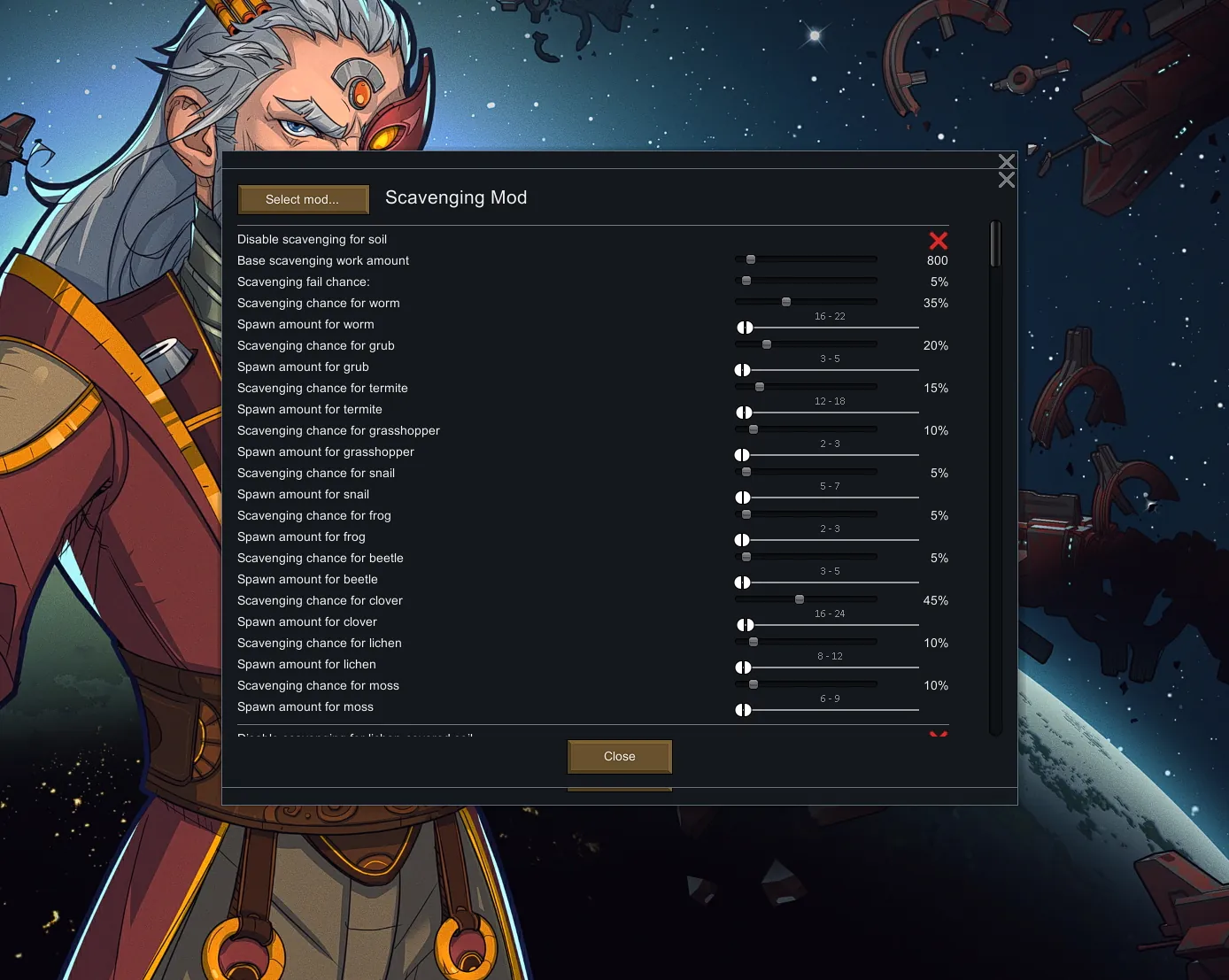 Included is a mod menu that will allow you to change chances of certain raw foods to appear, as well as fail chances. You can also disable certain tile types if you want.