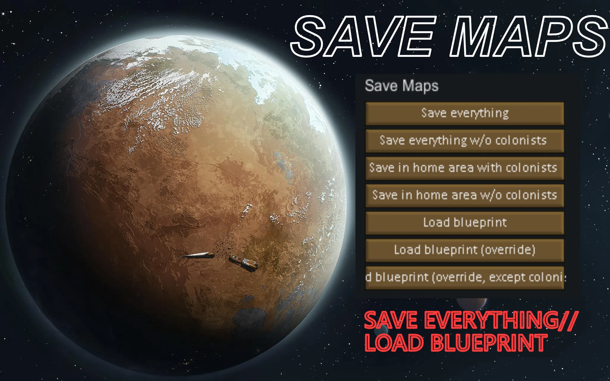 [*] Optionally, Save Maps can save your colonists along with a map so that they will never be separate or gone, ever.