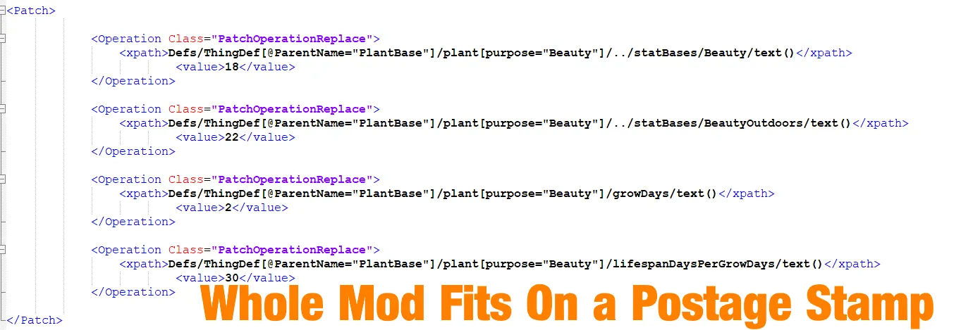 This way my patch is structured, the compatibility is infinite and unerring. Every decorative plant that does, will, or can exist will be modified. If a decorative plant is not patched, it's a problem with that author not flagging it properly, not with my mod.