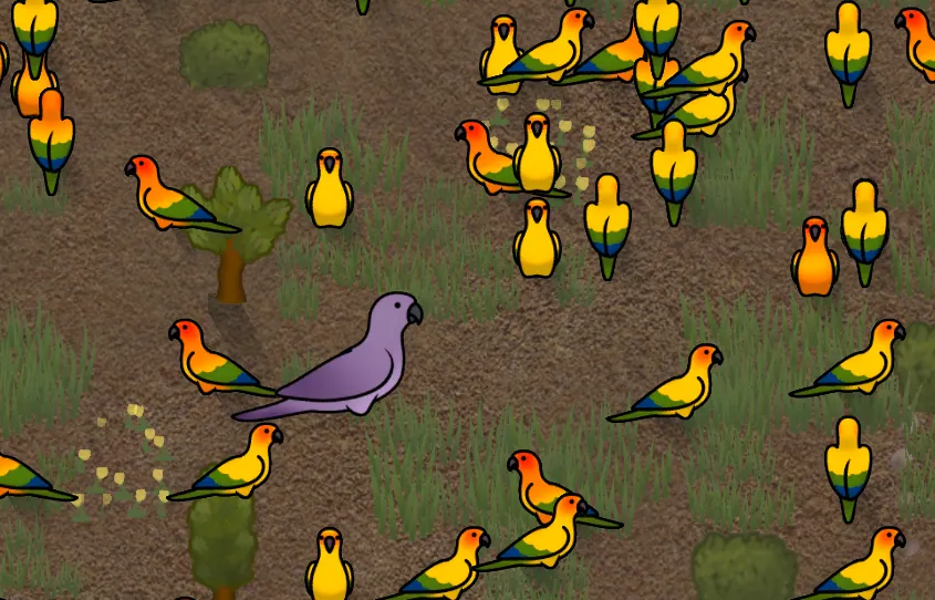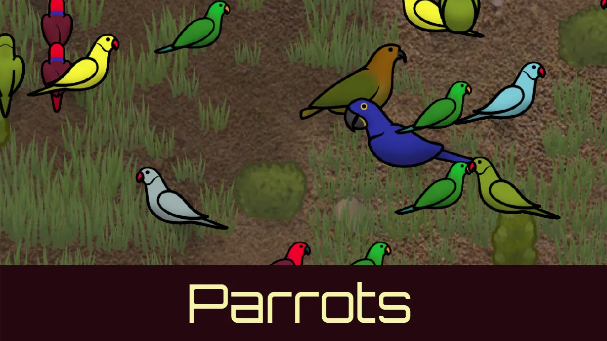 Diversify your parrots! Adds hyacinth macaws, keas, eclectus parrots, and ringnecked parakeets. Parrots will spawn in the wild, and can be sold by traders.