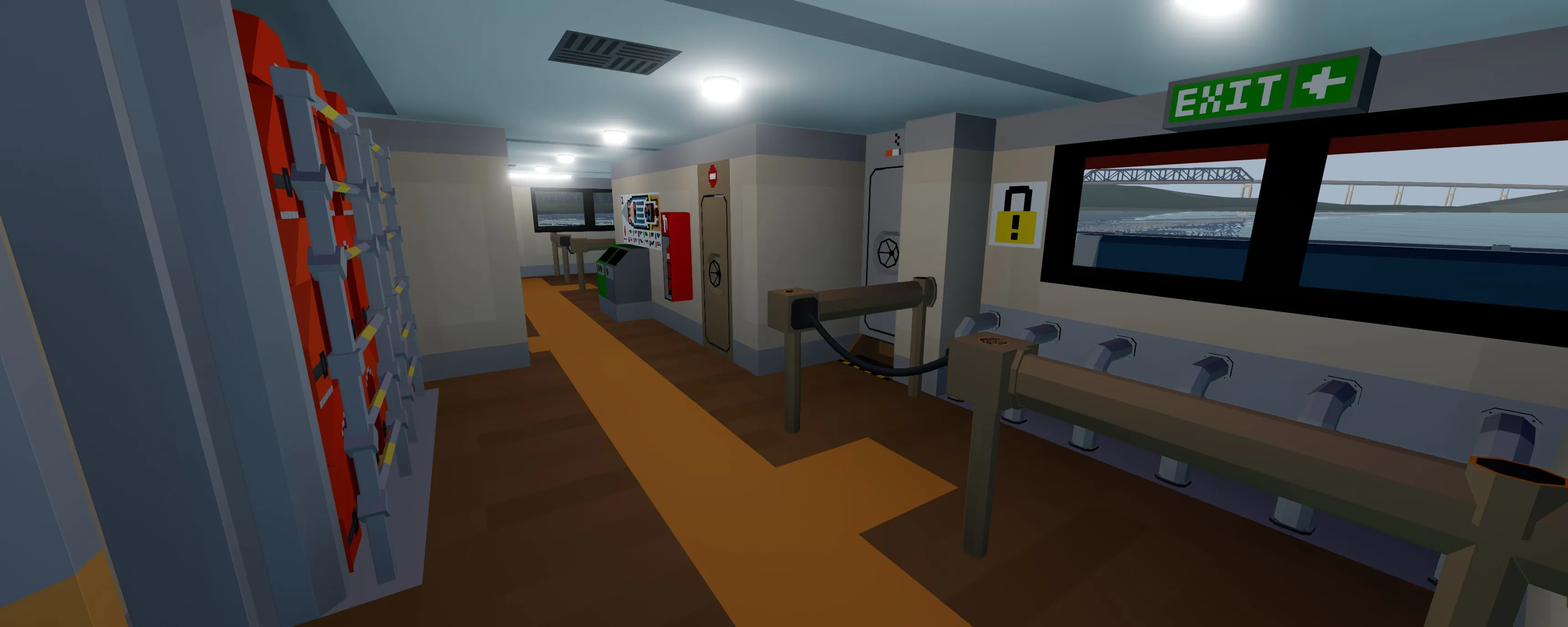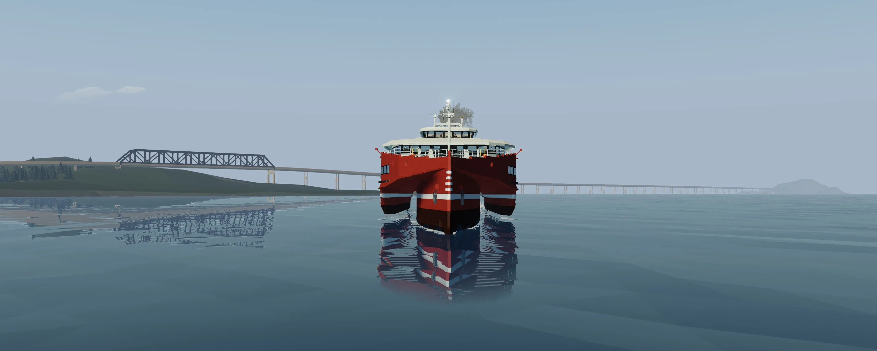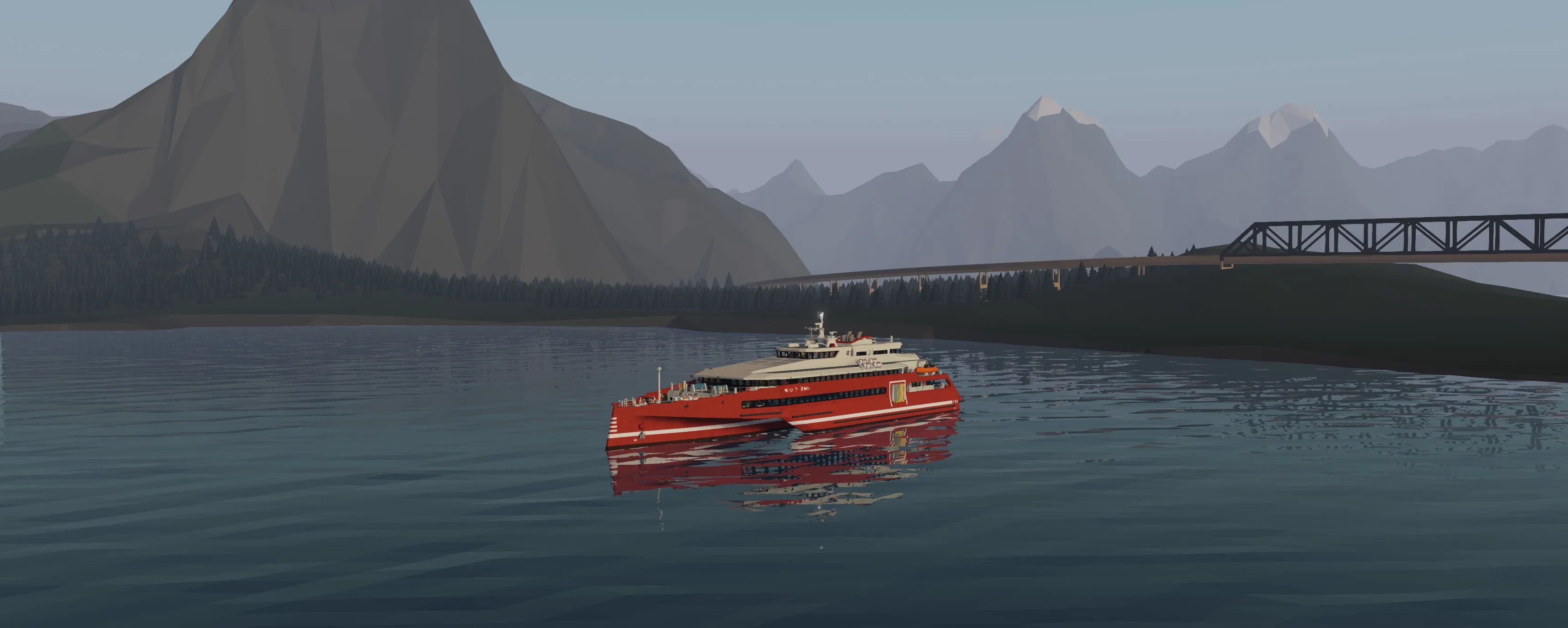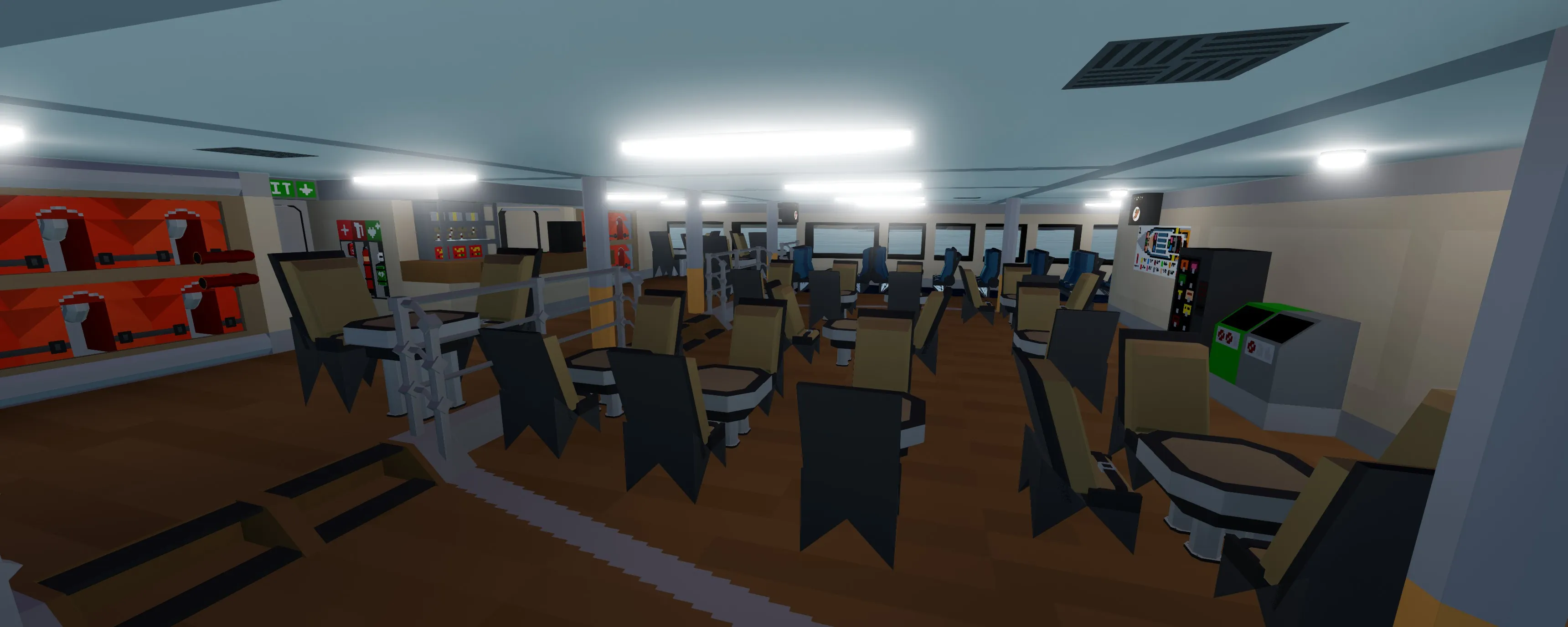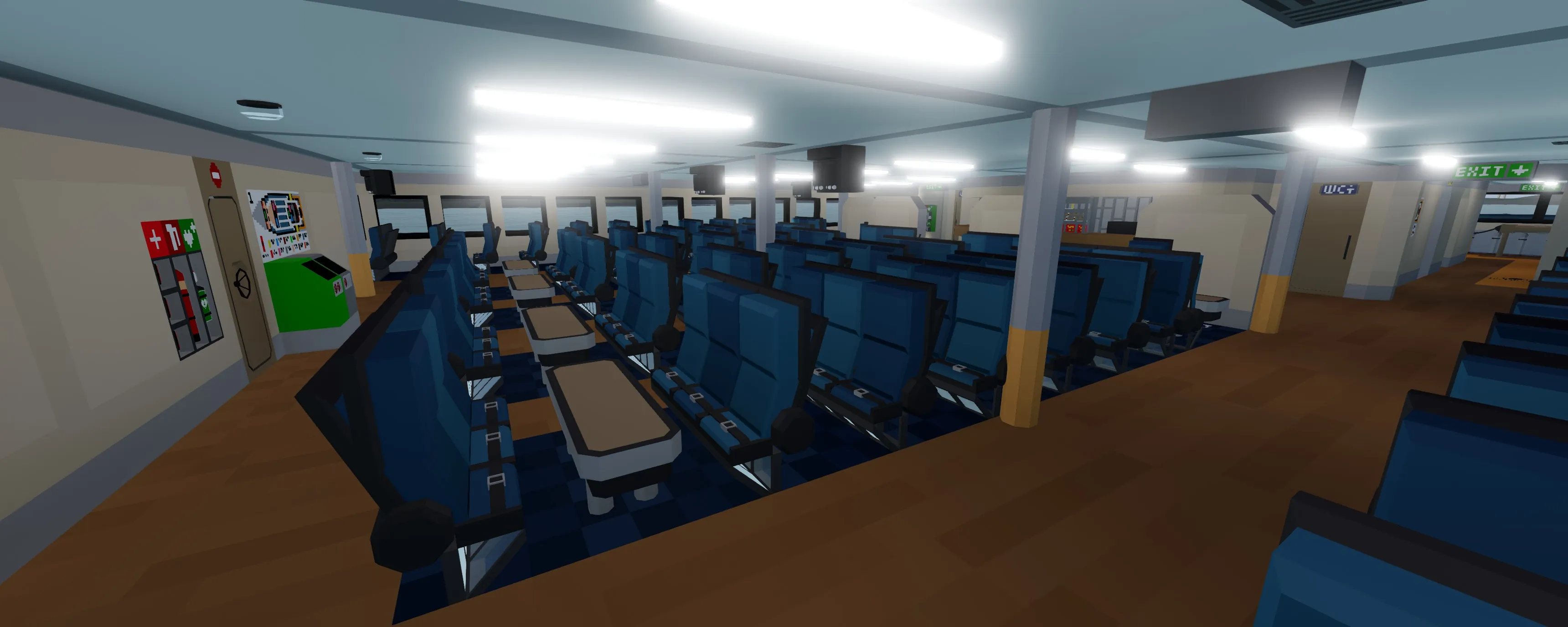 The Monarch is a 67 meter high speed passenger jet-ferry trimaran (yeah lol it's a mouthful). It has the capacity to transport over 400 passengers in comfort. The layout is split up into three different seating classes and has forward and rear outdoor seating. The monarch has two 24 cylinder 3x3 modular engines that power four water jets which can accelerate the vessel up to and exceeding 40 knots. The ferry has partial hydrofoil capabilities that slightly raise the pontoons out of the water for greater efficiency at high speeds. The bridge is equipped with Garmin MFDs and various systems for enhanced maneuverability. Large boarding ramps can be found on either side of the vessel for easy boarding. There is even an elevator at the stern as well as bike and large item storage. Navigational signage can be found pretty much everywhere round the ship in case you get lost. This build can also be rather laggy so using low physics settings might not be a bad idea.