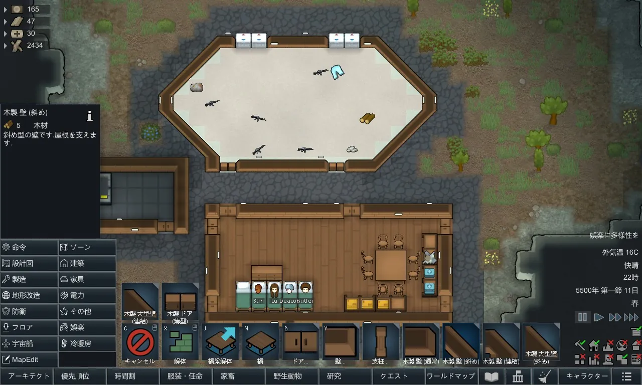 Rimworldが壁を実装する方法が原因で、トリックと妥協なしでは斜めの壁を作成することができません。このModでは、5種類の新しいタイルを使い、ほとんどの建設条件に対応しています。