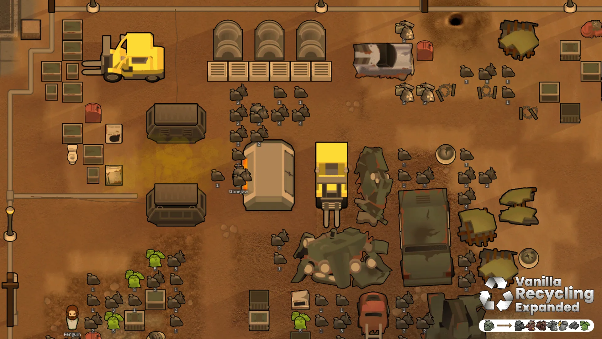 Vanilla Recycling Expanded is our spin on recycling in RimWorld. No longer you will be left with hundreds of wastepacks that you will try to send away into distant parts of the world to forget about them. No longer you will have to try and cheese the game to get rid of pollution. Vanilla Recycling Expanded actually gives wastepacks a purpose, and will let you convert them into a variety of useful new resources!
